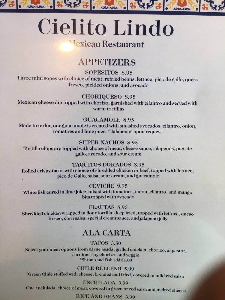 Cielito Lindo Mexican Restaurant in Santa Rosa, CA offers a delightful experience with authentic Mexican cuisine. The menu features mouthwatering dishes like the Birria tacos and ceviche that customers rave about for their consistent deliciousness. The friendly staff and fast service create a welcoming atmosphere. The Quesabirria tacos with handmade tortillas are a standout highlight, reminiscent of home-cooked meals. Customers appreciate the generous portions and great prices, making it a go-to spot for Mexican food lovers. Whether dining in or taking out, Cielito Lindo ensures a satisfying meal with flavorful options like the chicken tacos and super burrito. Don't miss out on the opportunity to taste the best tacos in Sonoma at Cielito Lindo Mexican Restaurant.